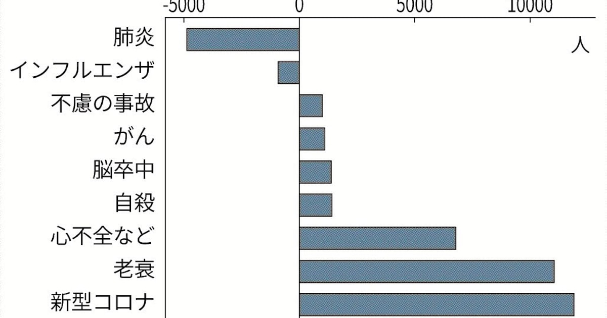 2021年の9月までの死亡数が前年同期より約6万人増え、東日本大震災があり戦後最多の増加となった11年を上回っていることが分かった。新型コロナウイルスだけでなく、心疾患や自殺などによる死亡も前年より急増。コロナ禍の余波で平年を大きく上回る「超過死亡」が生じている。