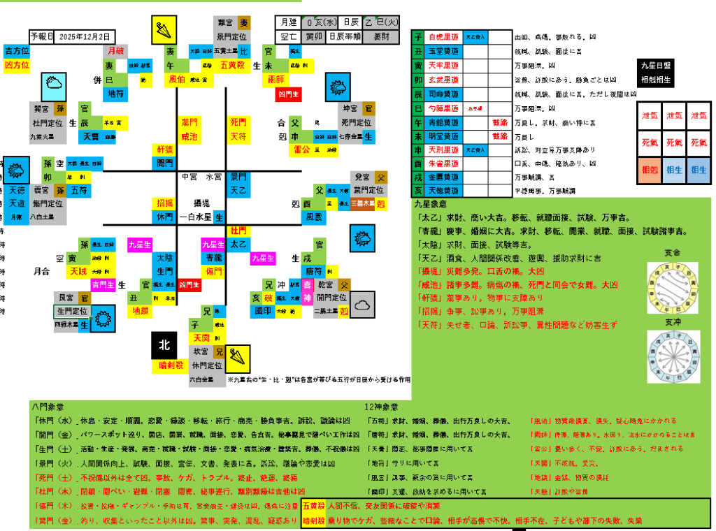 大吉方位(生門旺相) お出かけした場合の方位事象…