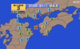 3日午後8時18分ごろ、愛媛県で震度3の揺れを観測する地震がありました。この地震による津波の心配はありません。