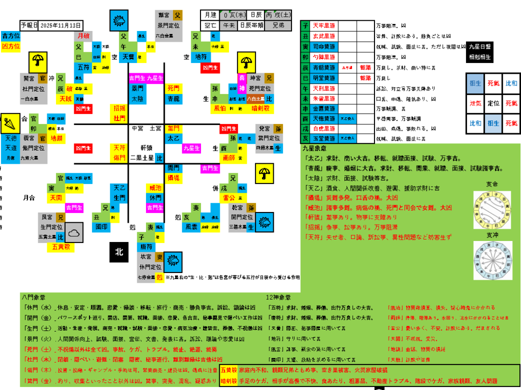 凶方位(杜門旺相、日破同会) お出かけした場合の方位事象…