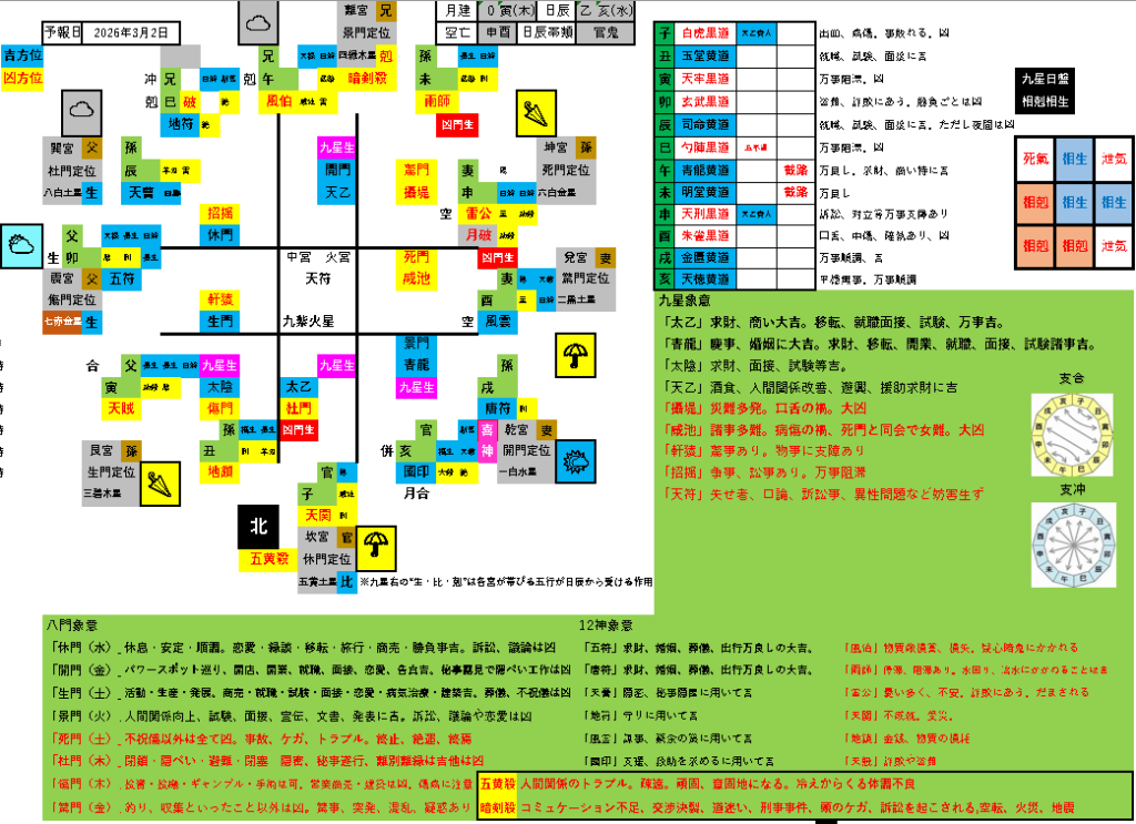 易照の方位予報 3月2日予報