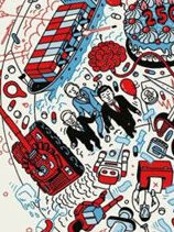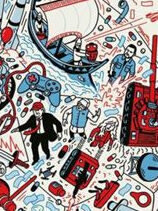 中央部では脳にコードが繋がれゲーム機のコントローラーに接続されているイラストが描かれています。