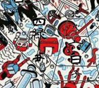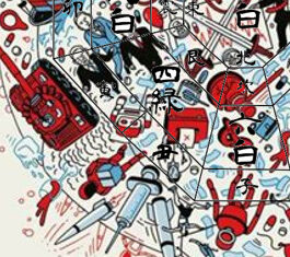 ただし艮宮(土)に「×」は描かれた紙を印刷機から取り出す人物が描かれています。