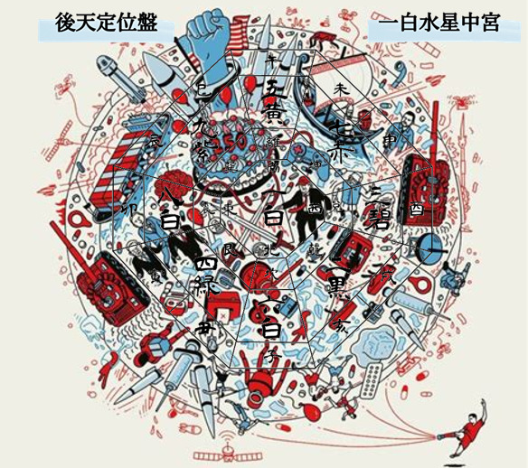 特に一白水星の本宮である北(子)の坎宮(水)は六白金星が回座、ここに暗剣殺、歳破が重なります。六白金星は頭領の星と呼ばれ、政治指導者を象徴します。ここに凶煞が重なりますから、世界各国で政変や指導者の交代がありそうです。
