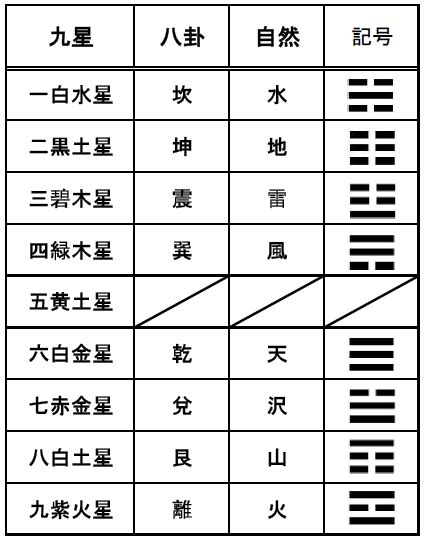 所で九星にはそれぞれ以下のように八卦が配当されています。