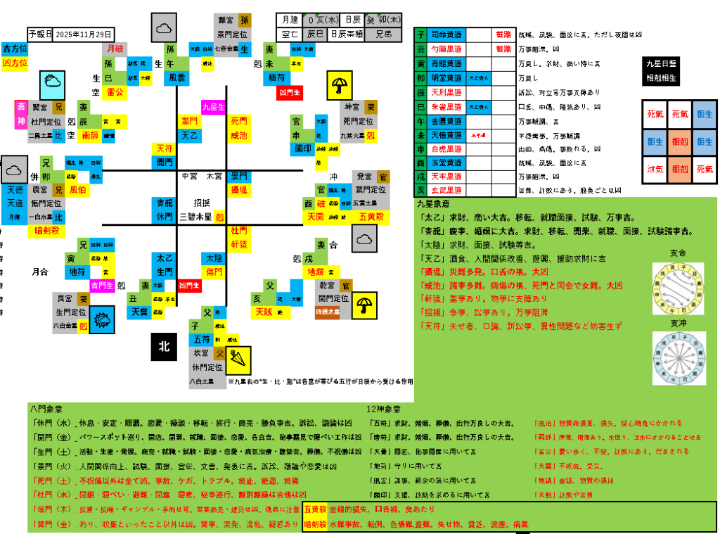吉方位(生門旺相・太乙同会) お出かけした場合の方位事象…