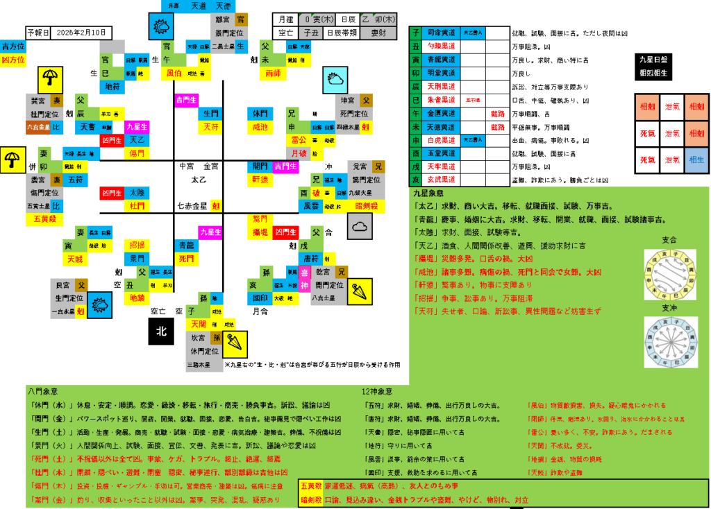 吉方位(生門旺相・天道・天徳・月徳) お出かけした場合の方位事象…