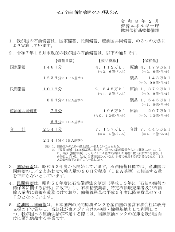 政府は政府と民間を含めた備蓄量は254日分あると発表していますが十分な量と言えるでしょうか?