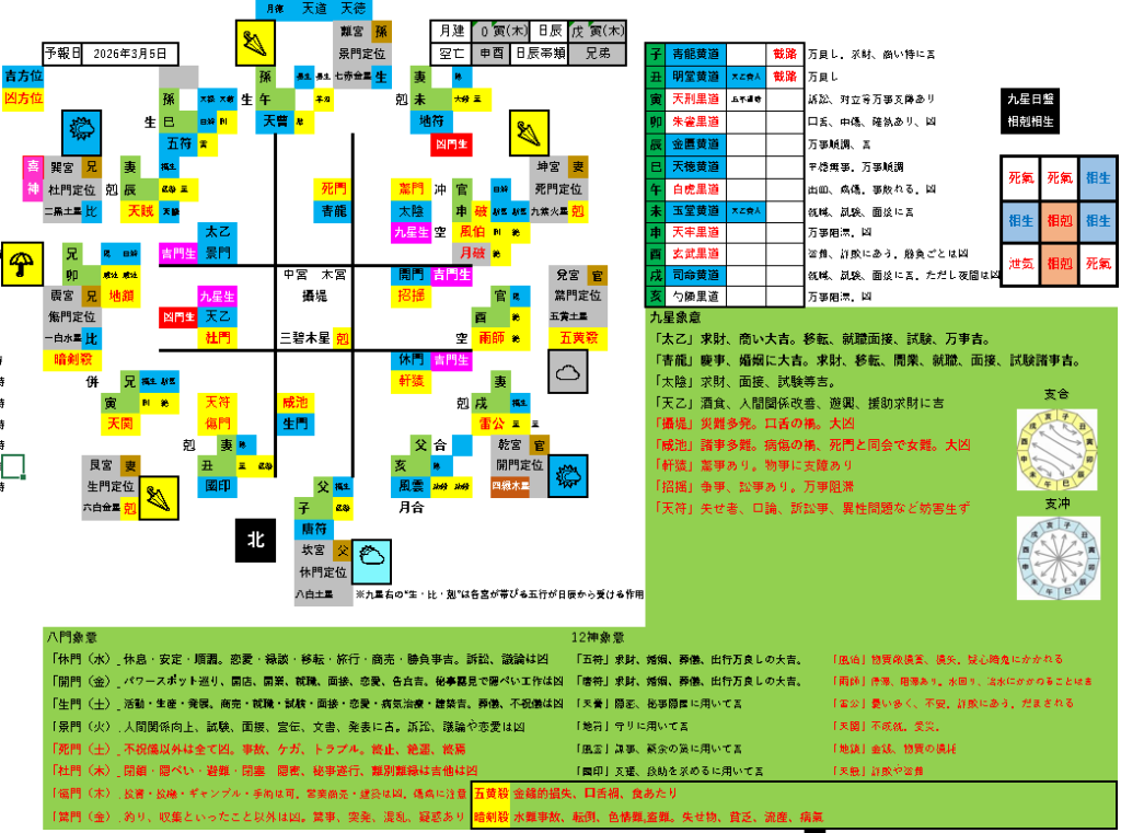 凶方位(杜門旺相・暗剣殺・天乙・月徳) お出かけした場合の方位事象…