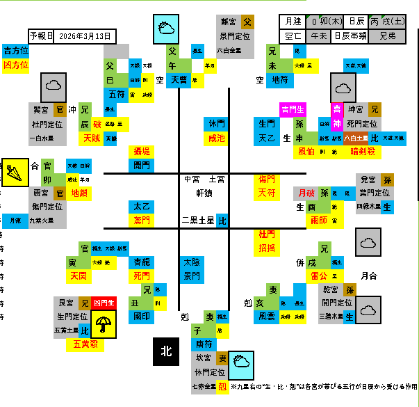 吉凶半々方位(開門・日破同会) お出かけした場合の方位事象…