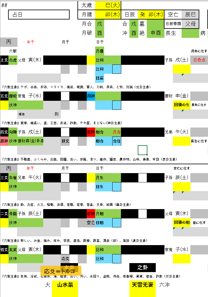 応爻も発動し官鬼を化出していますから、トルコも介入に前のめりな様子です。