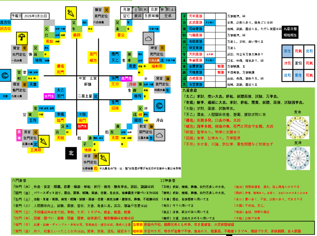 吉凶半々方位(生門旺相・日破) お出かけした場合の方位事象…