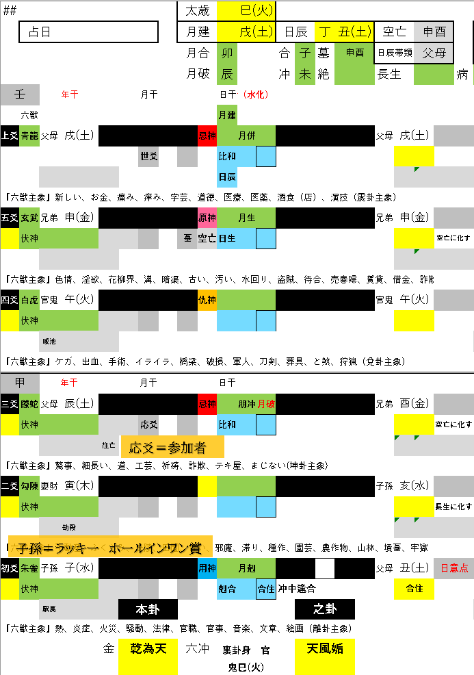 これは、賞がいくつ出るか見通しが立たない様子です。同時に発動爻が合住するので、たくさんは出ないでしょう。