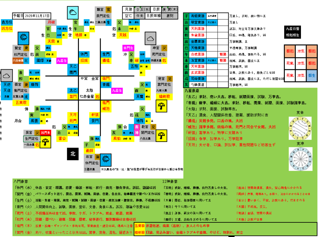 吉凶半々方位(生門旺相・日破同会) お出かけした場合の方位事象…