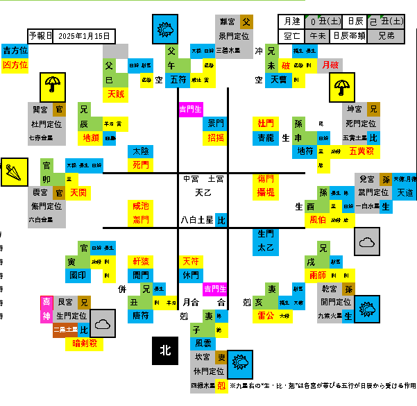 東☂️、南東🌂…効果的な方位除けが難しい方位です。吉刻を利用して現位置にい動するか、現地の滞在は短めに切り上げて、北🌤、北西🌤の吉方位で運氣の回復を図ってください