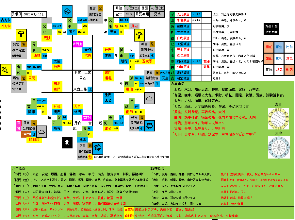 吉凶半々方位(開門旺相・暗剣殺同会) お出かけした場合の方位事象…