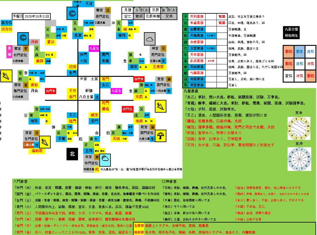 吉凶半々方位(開門旺相・五黄殺・日破同会) お出かけした場合の方位事象…