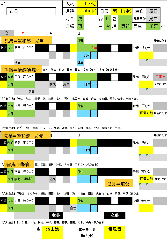 この辺りビジュアル的に占う内容を指し示すのが五行易で、この辺り何度占っていてもブレません。