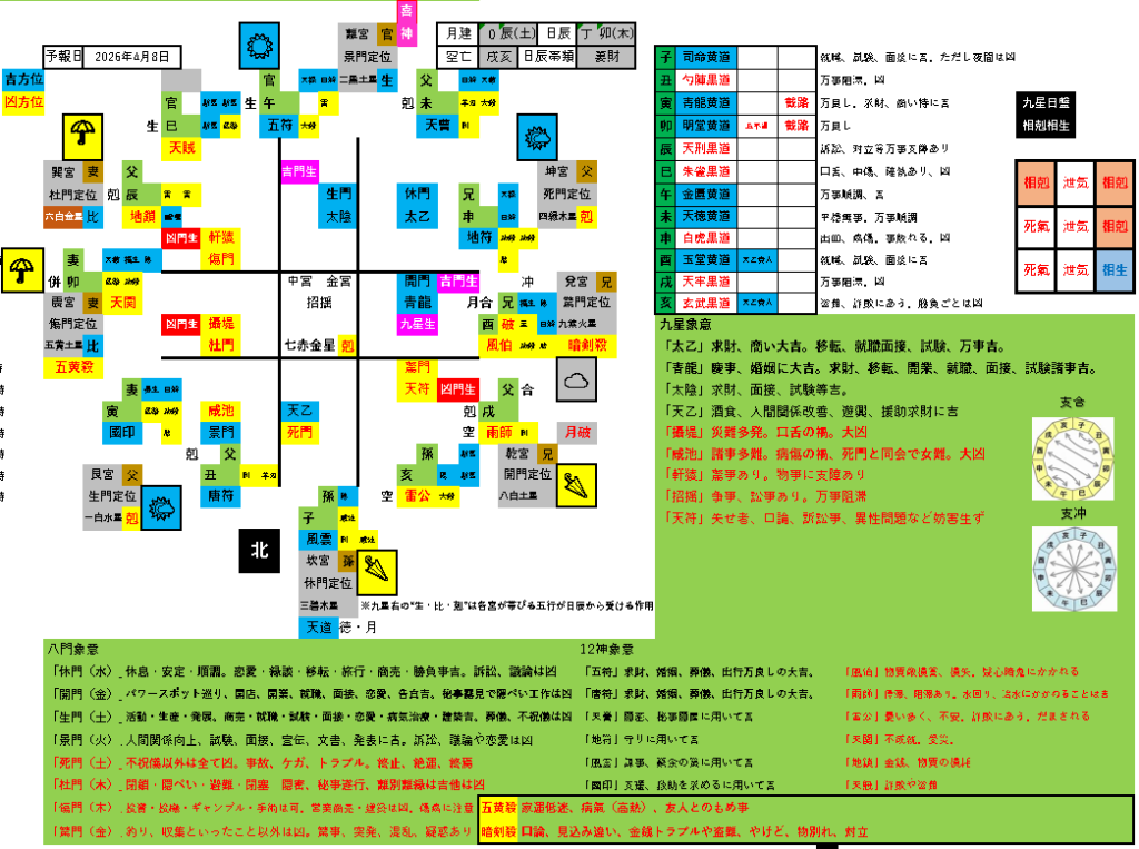 小凶方位(死門休囚・月徳・天道・天徳)お出かけした場合の方位事象は…