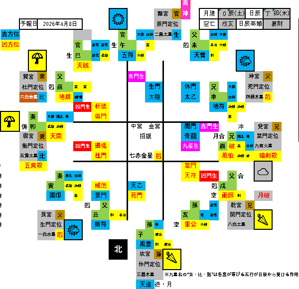北西🌂…効果的な方位除けが難しい方位です。吉刻を利用して移動するとよいでしょう。