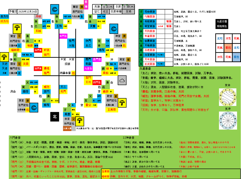吉方位(生門旺相・太陰同会) お出かけした場合の方位事象…