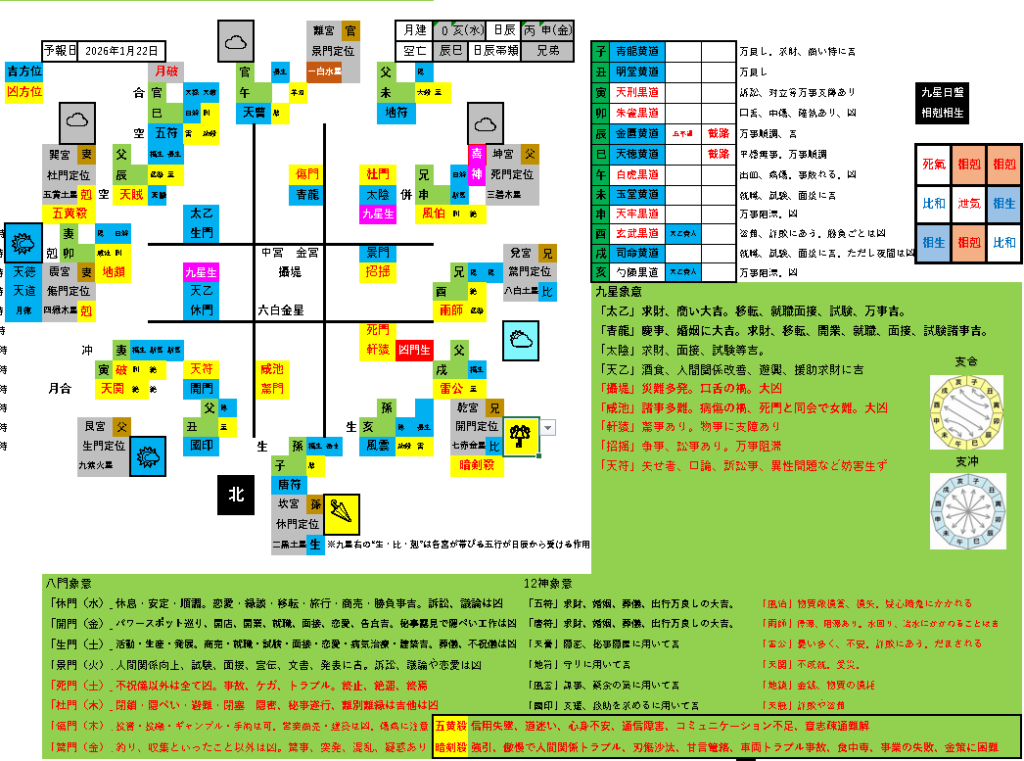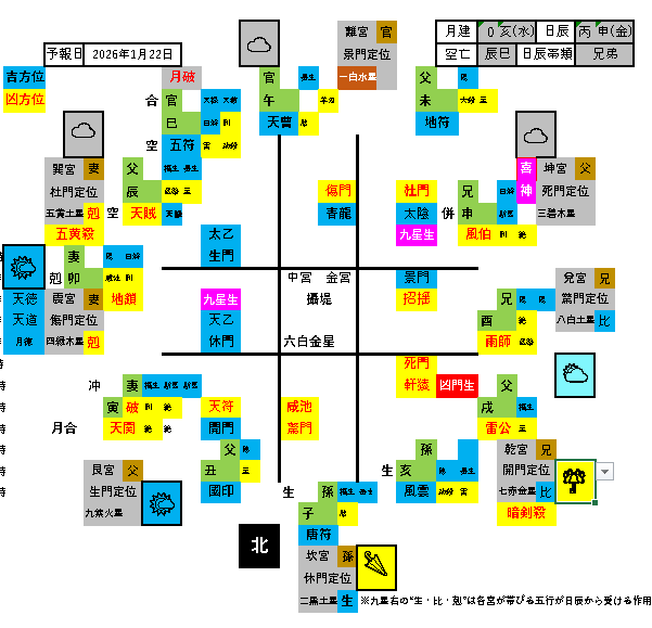 吉凶半々方位(生門・五黄殺同会) お出かけした場合の方位事象…