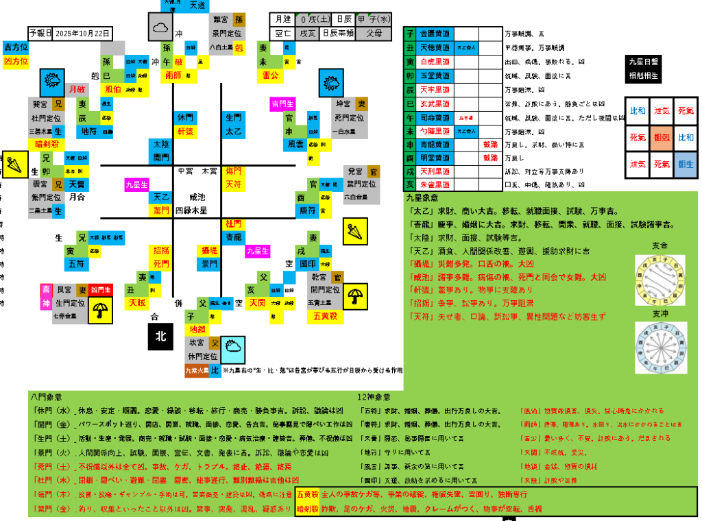 吉方位(生門旺相) お出かけした場合の方位事象…