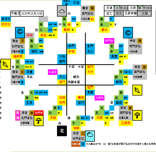 吉凶半々方位(休門旺相・日破同会) お出かけした場合の方位事象…