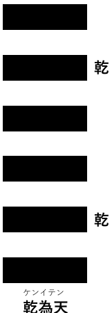 物事を占って乾為天を得たならば、目先直近のことは吉ですが、長期にわたることは最初は良くてもその後漸次くだり坂となります。占ってこの卦を得た時は万事大吉であるが、大吉則凶に転じやすく、直近の事を占って得るは吉も、長期の事を占ってこの卦を得た時は凶と見ます