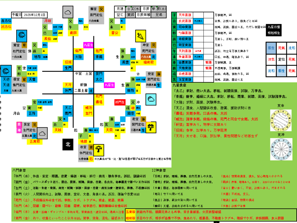 吉方位(生門旺相) お出かけした場合の方位事象…