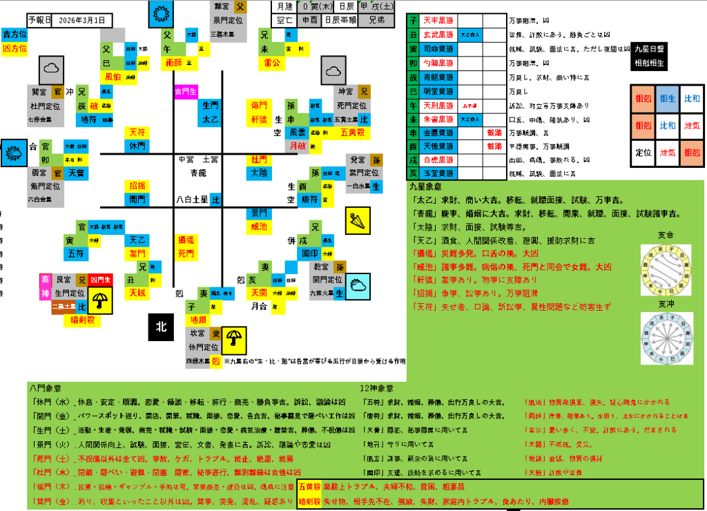 大吉方位(生門旺相・太乙同会) お出かけした場合の方位事象…