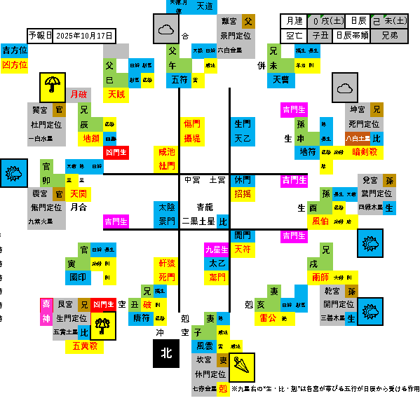 北🌂…効果的な方位除けが難しいので、吉刻を利用して移動するするとよいでしょう。