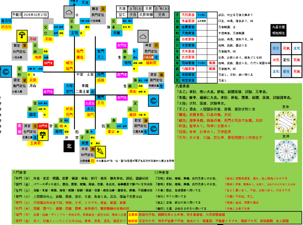 吉凶半々方位(生門旺相・暗剣殺同会)お出かけした場合の方位事象…
