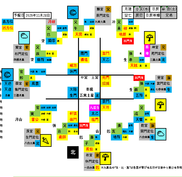 28日注意本命星は五黄中宮日で暗剣殺、五黄殺はありません。日破の重なる二黒土星注意日です。