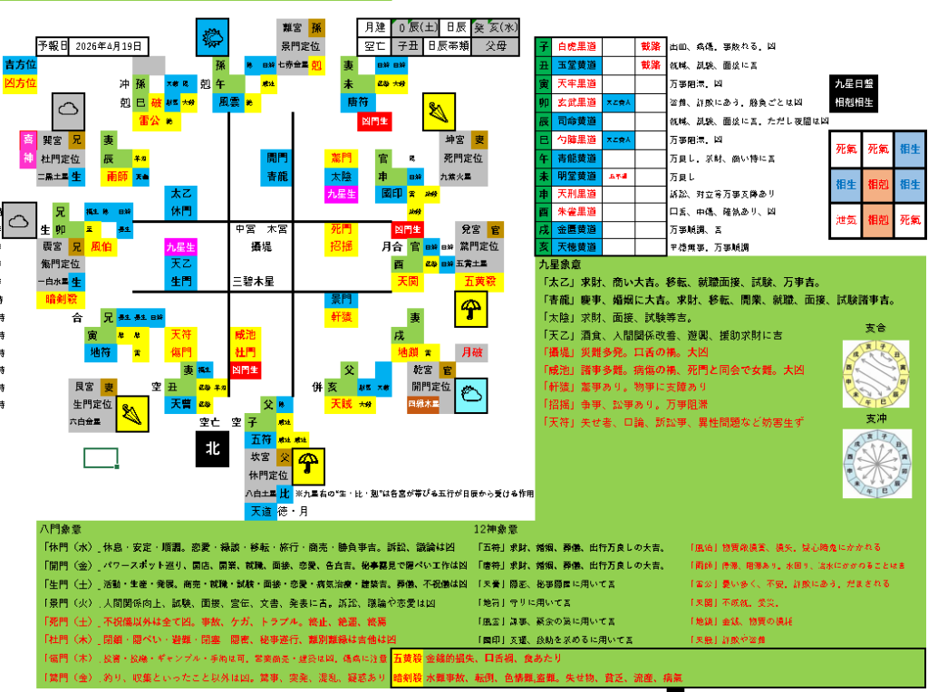 易照の方位予報 4月19日予報