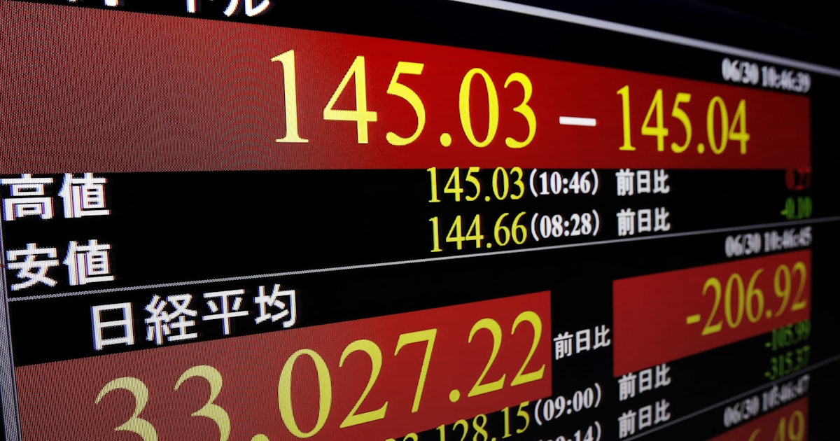 30日の外国為替市場で円が対ドルで下落し、一時1ドル=145円台を付けた。2022年11月以来、およそ7カ月ぶりの円安・ドル高水準となる。米連邦準備理事会(FRB)の金融引き締めが長引くとの見方から、ドルを買う動きが強まった。政府・日銀は22年9月に145円台で円買い介入を実施しており、市場では警戒感が増している。