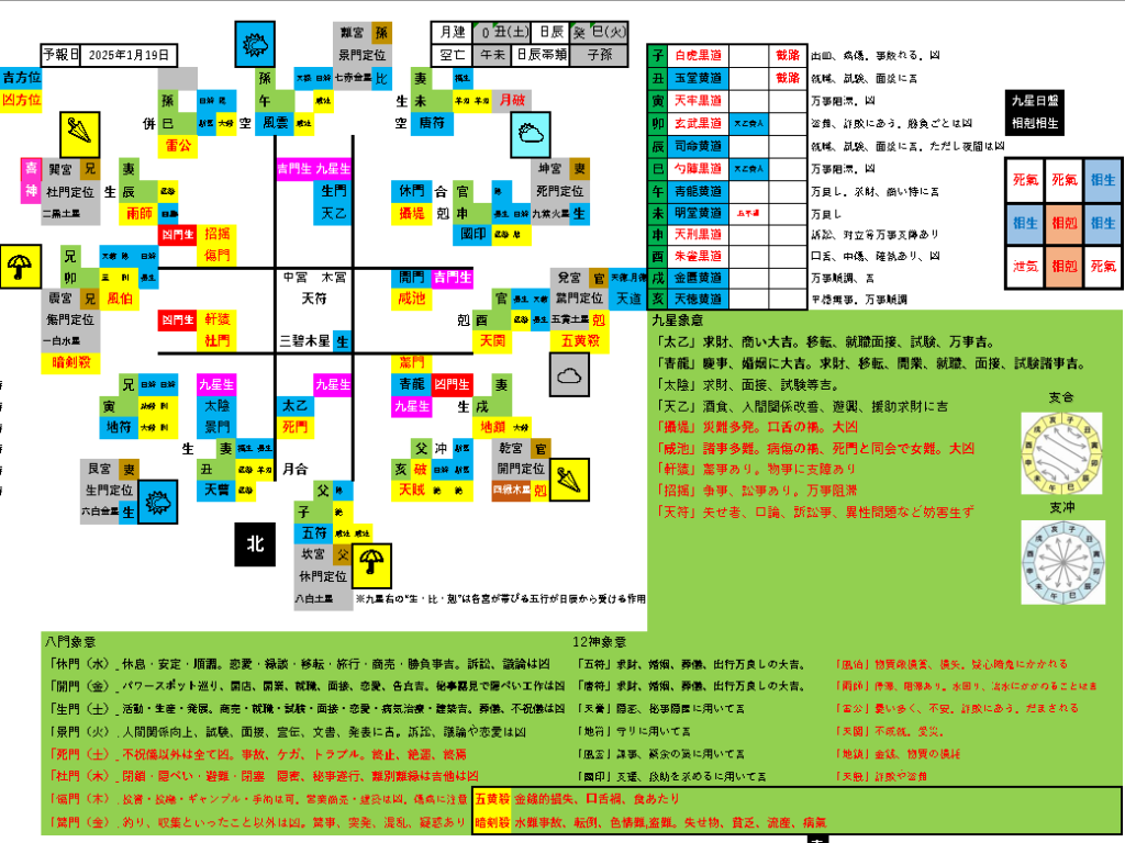 吉方位(生門旺相・吉星同会) お出かけした場合の方位事象…