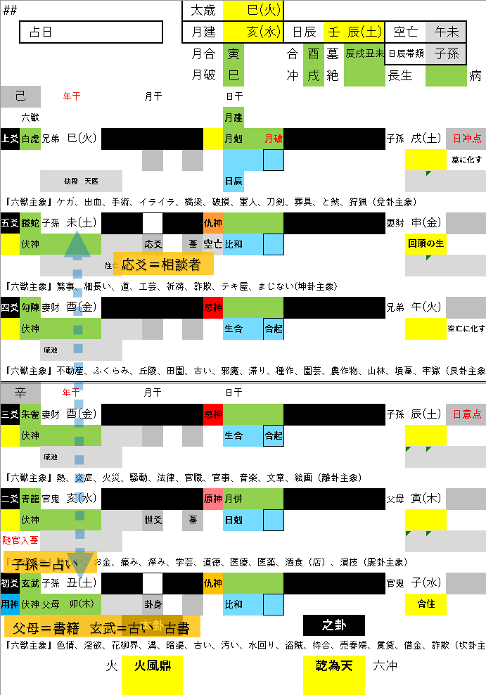 本卦は変化、古書の内容が自身の占術にアレンジできないかを検討している様子です。