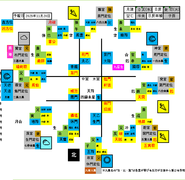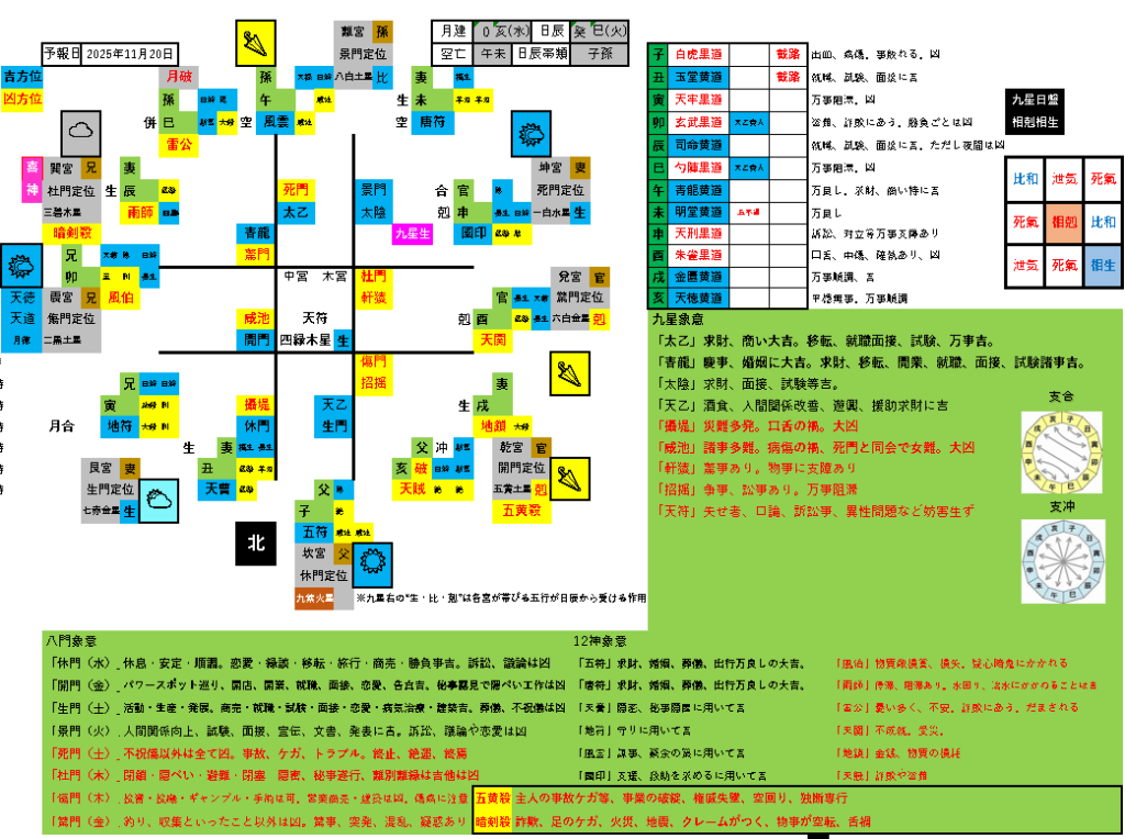 大吉方位(生門旺相) お出かけした場合の方位事象…