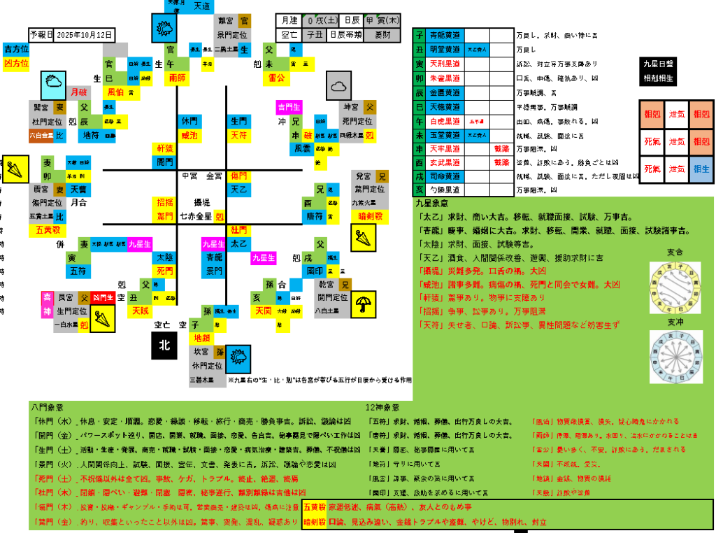 吉凶半々方位(生門休囚・日破同会) お出かけした場合の方位事象…