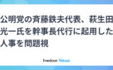 公明党の斉藤鉄夫代表、萩生田光一氏を幹事長代行に起用した人事を問題視