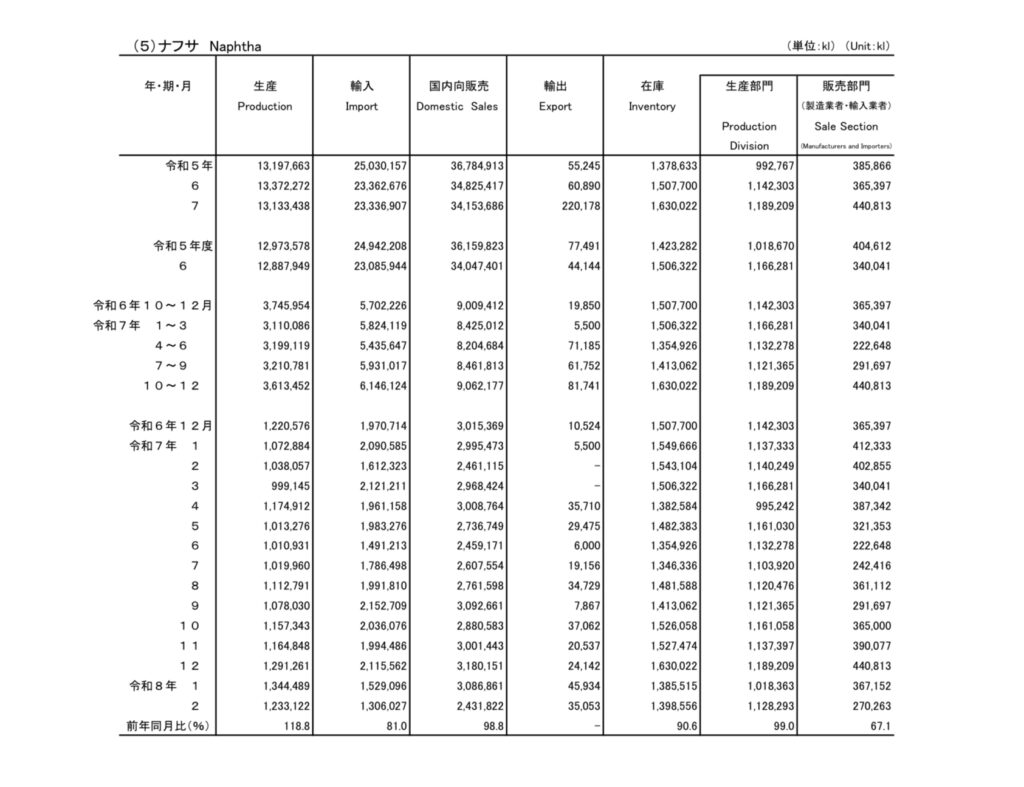 ナフサの販売量=消費量ではありませんが、販売量の月間平均は2846万㍑ですから、今回調達した原油から生成できるナフサの量は月間販売量の半分にも満たない数字です。