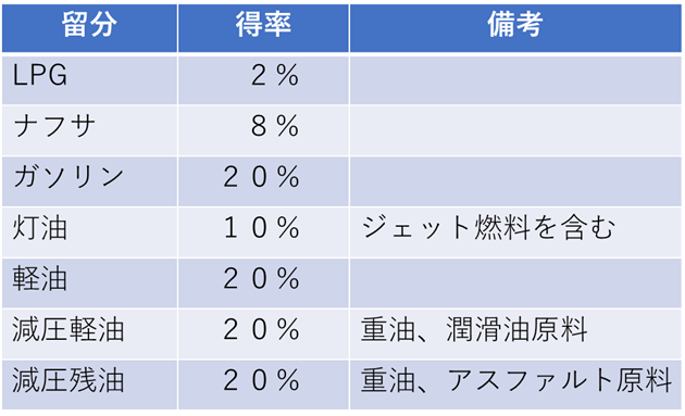 ちなみに何かと話題の「ナフサ」は、原油から獲得できる総量は全体から8%〜程度とされます。