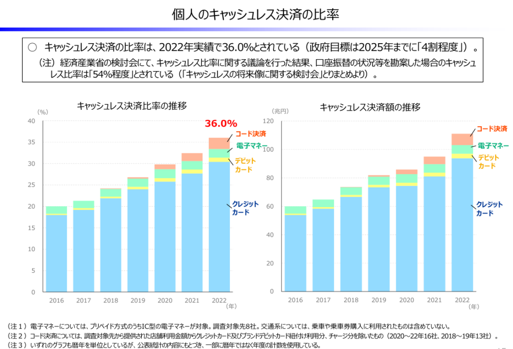 クレジットカードを始め、モバイルツールを使った電子決済の比率が年々高まっているようです。