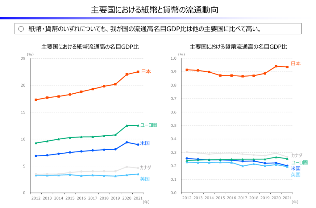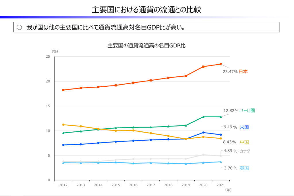 一方で、日本は先進国の中でも現金の使用比率が高いようです。