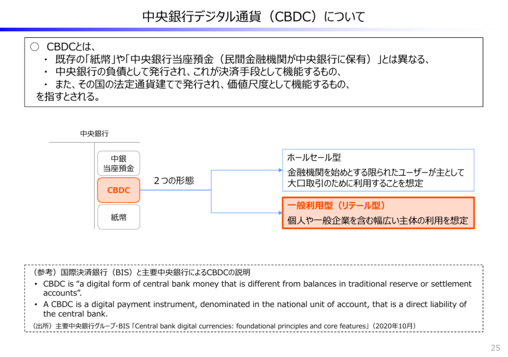 CBDC(中央銀行デジタル通貨)については引用の財務省の資料にも記載があります。