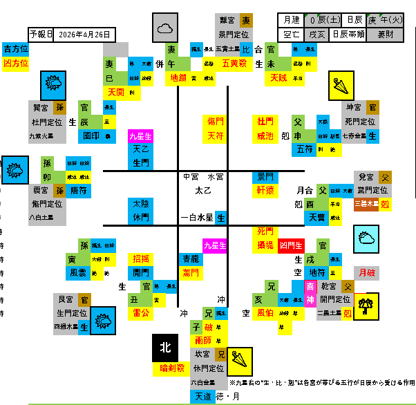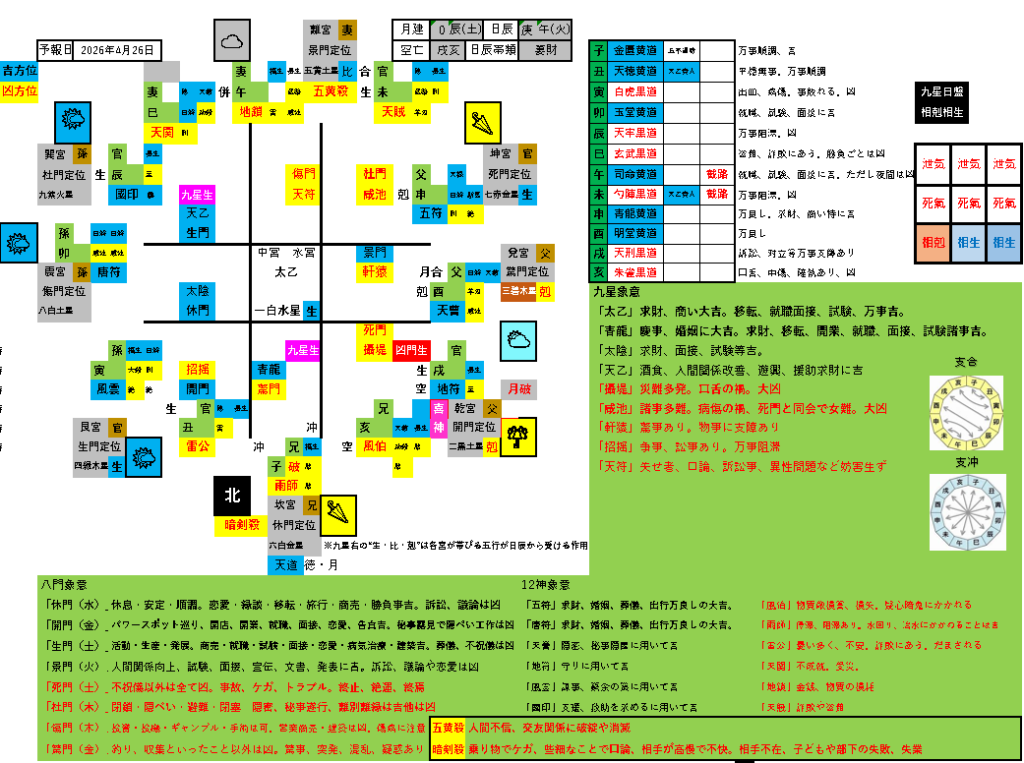 26日注意本命星は、二黒土星、三碧木星、六白金星、八白土星です。(お出かけの有無に関わらず、凶事発生しやすい一日となります)