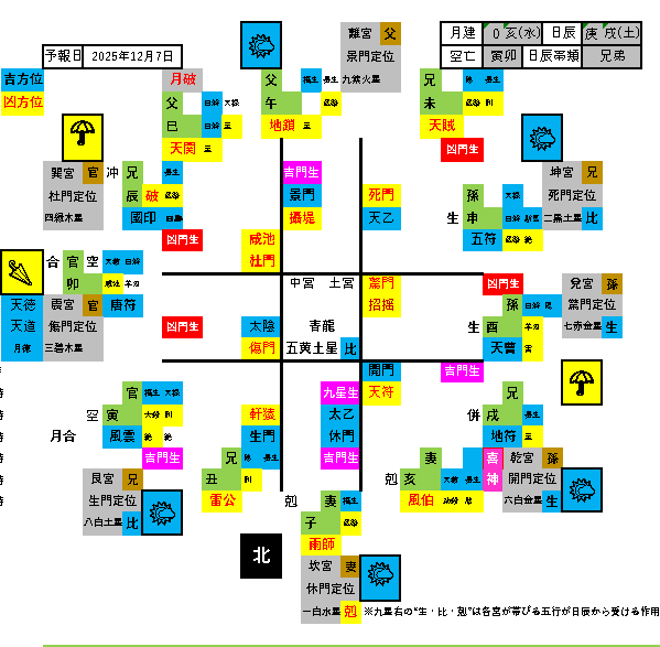南西☂️、西🌂…北西🌤に方位除けが可能です。吉方位に移動後、現地への移動が南🌤となるように調整して方位除けを行いましょう。南東は凶意が強いので、吉刻を利用して移動するとよいでしょう。