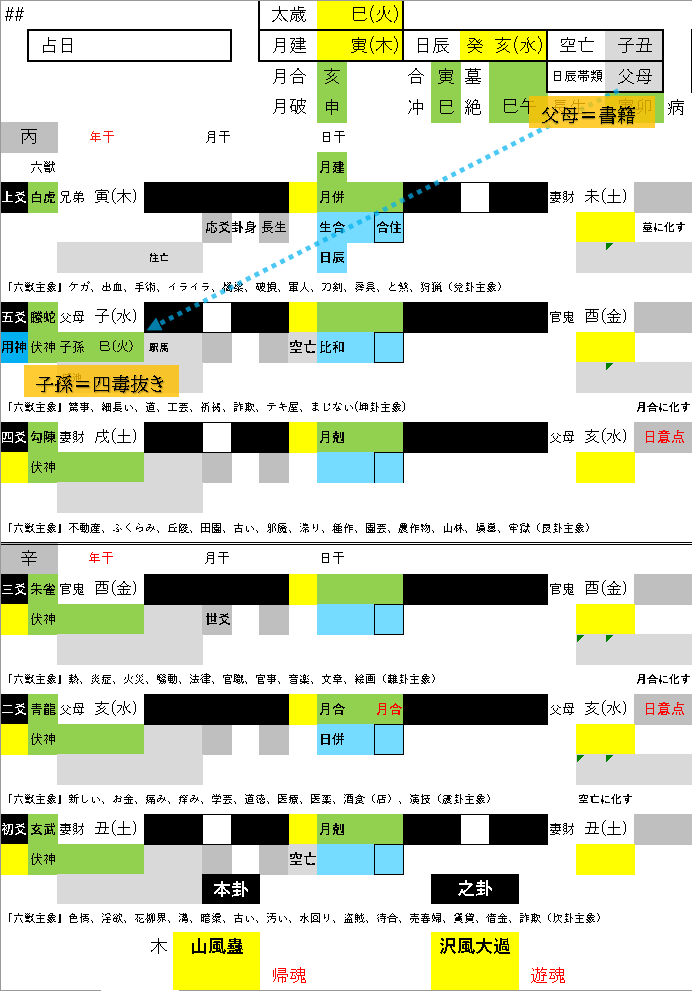 ただし用神は日辰から冲を受けて言います。日辰帯類は父母で、真っ向から否定する説が出てきている様子です。