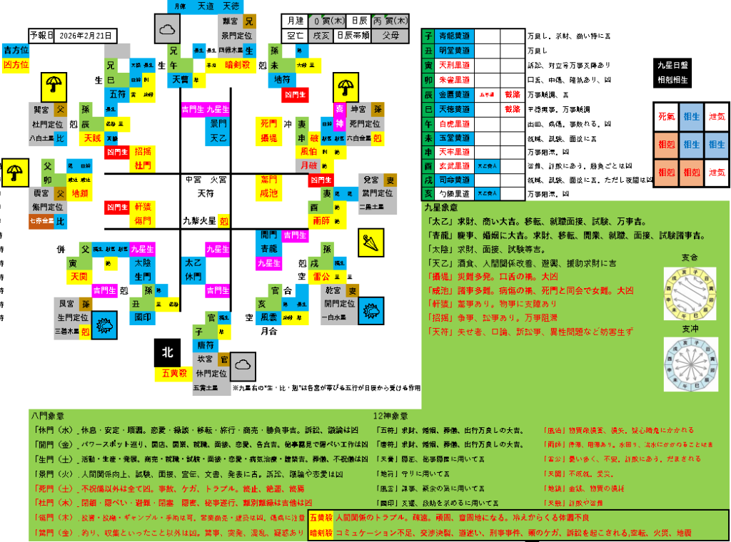 大凶方位(杜門旺相) お出かけした場合の方位事象…